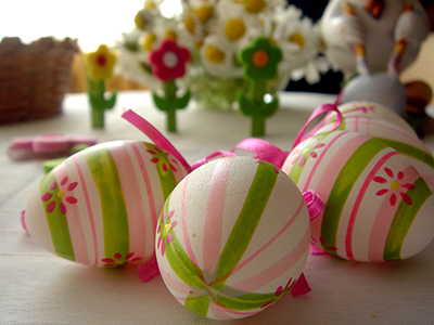 Das bedeutendste christliche Fest des Jahres ist **Ostern**. Die Osterbräuche in den einzelnen Regionen unterscheiden sich voneinander deutlich. Weil sich Ostern in der Vergangenheit zeitlich oft mit heidnischen Festen zum Winterende und Frühlingsbeginn überschnitt, sind viele Volkstraditionen bis heute eine Mischung aus der sowohl christlichen als auch der vorchristlichen Zeit. Der Termin ist beweglich, Ostern wird jeweils am ersten Sonntag nach dem ersten Vollmond nach dem Frühlingsäquinoktialpunkt gefeiert.